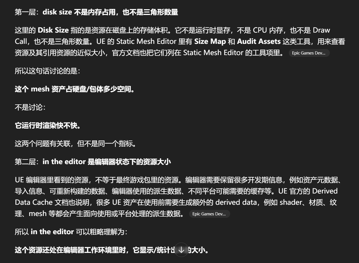 当这个 mesh 被 UE 按目标平台规则处理、压缩,并变成打包/运行时使用的数据之后。