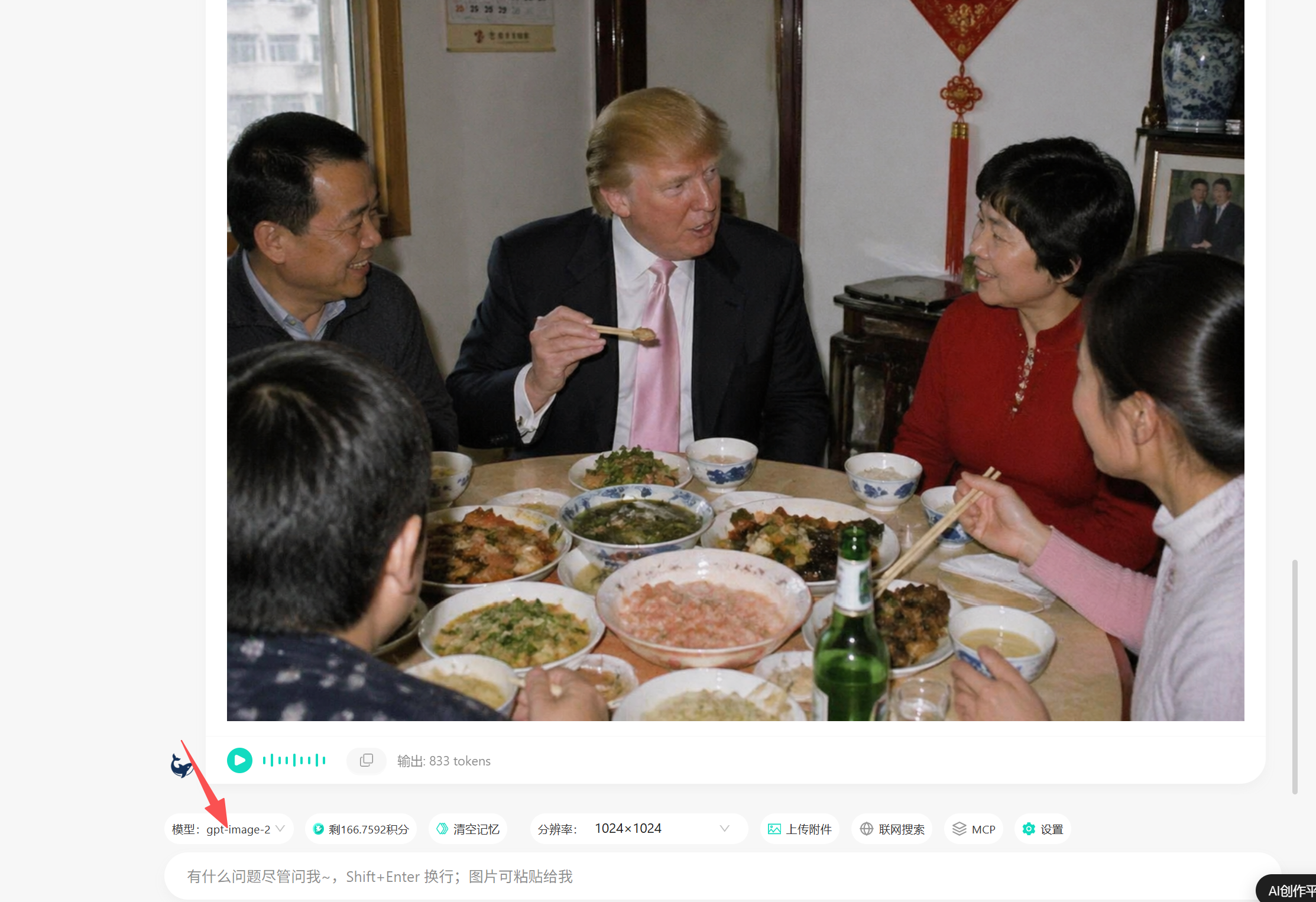 - 在模型选择下拉菜单中,定位并选中 GPTimage2 模型。