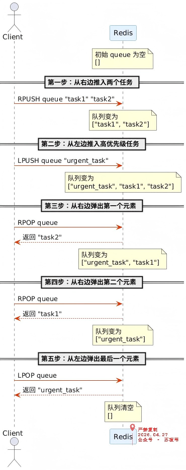 在 Redis 里,List 可以看作一个双向队列:你可以在左边(头)加,右边(尾)加,也可以从左边或右边弹出。这种结构天然适合做队列(先进先出)和栈(后进先出)。
