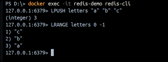 docker exec -it redis-demo redis-cli
