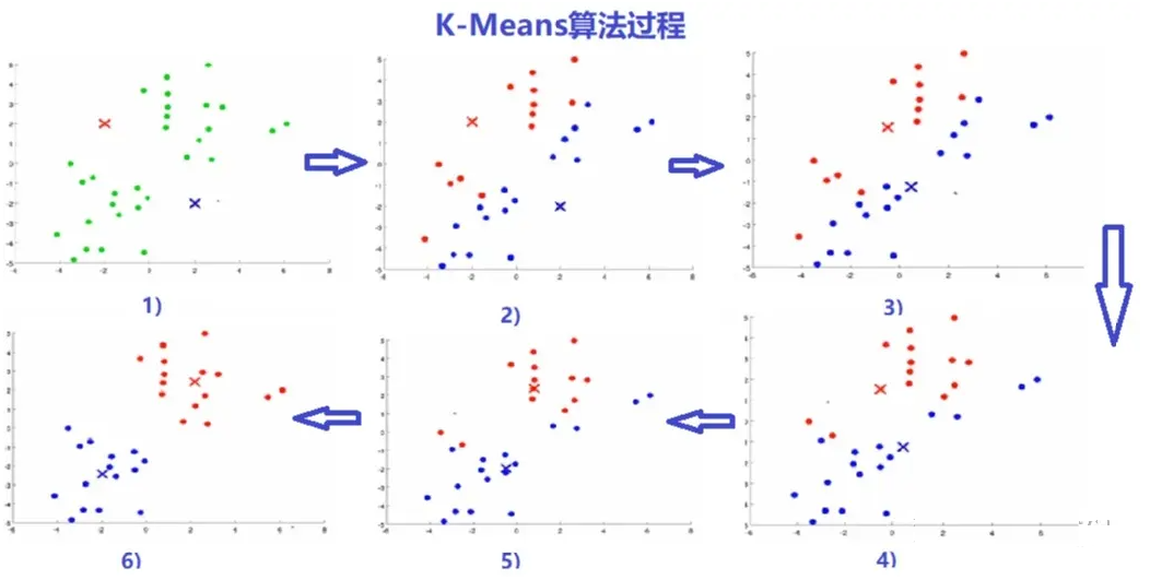 不断重复迭代上述的(2)与(3)两个步骤,直到聚类中心点的变化很小,或者达到指定的迭代次数