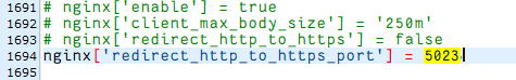 将默认80访问端口改成5023修改文件/etc/gitlab/gitlab.rb第1694行代码