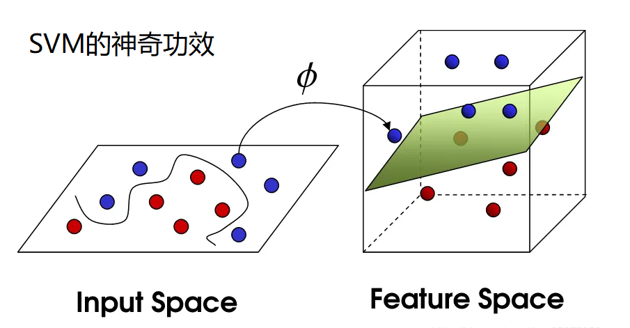 它们成为线性可分的,再使用线性划分的原理来判断分类边界。