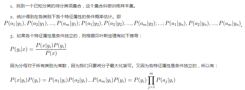 - 设x={a~1~,a~2~,...,a~m~}为一个待分类项,而每个a为x的一个特征属性