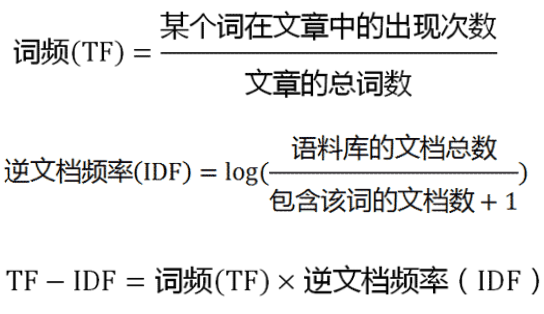 量除以包含该词的文档数量,再将得到的商取以10为底的对数 TF-IDF = TF x IDF