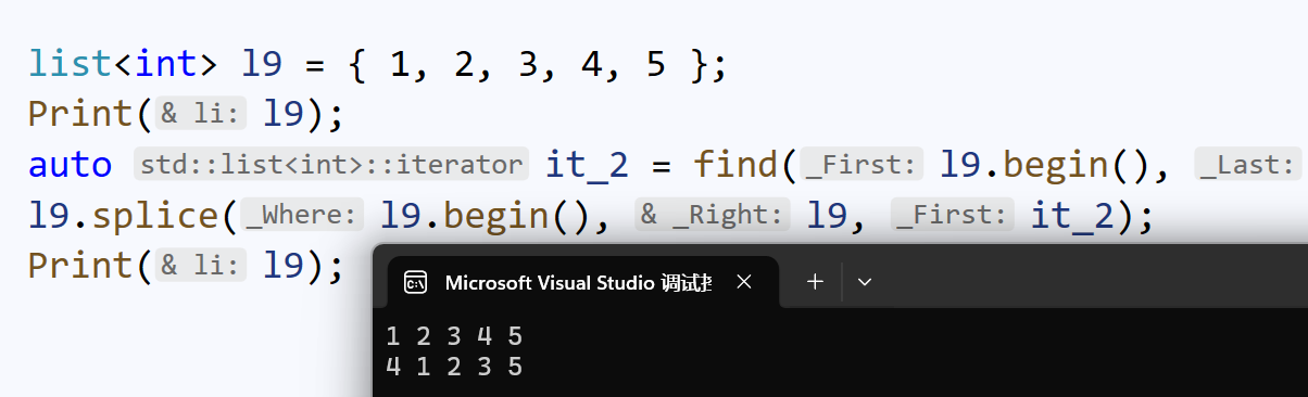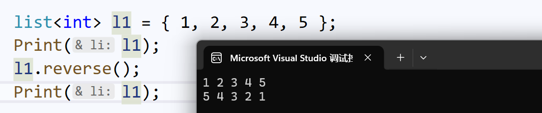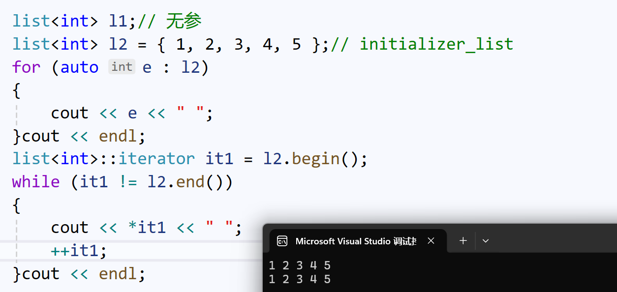 我们就可以用迭代器和范围for的方式,打印list序列: