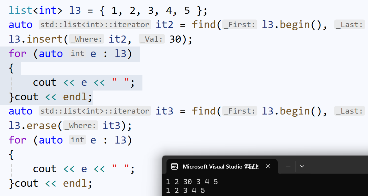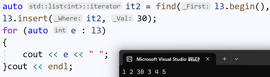 auto it2 = find(l3.begin(), l3.end(), 3);