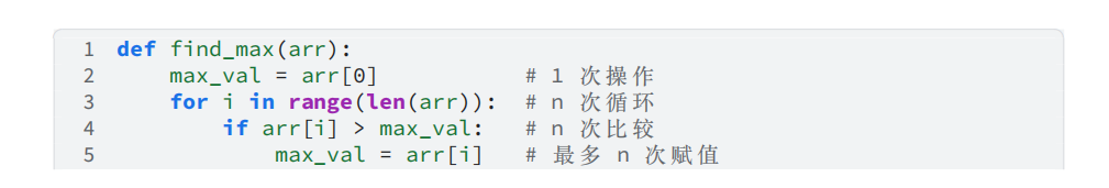 • 因此,该算法的时间复杂度为 𝑂(𝑛)。这里的 𝑂 表示渐近符号,强调 𝑓(𝑛) 与 𝑛 成正比。