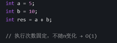 没有循环和递归的算法,时间复杂度通常为 𝑂(1)