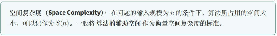 空间复杂度的渐近符号表示方法与时间复杂度相同,可以表示为𝑆(𝑛) = 𝑂(𝑓(𝑛)) ,表示算法空间