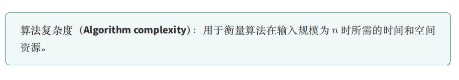 「算法复杂度」包括「时间复杂度」和「空间复杂度」,用于衡量算法在输入规模 𝑛 增大时的资源消