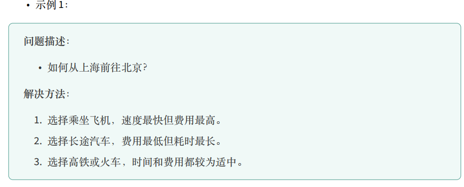 输入:【算法】需要接收外部提供的信息作为处理对象,这些信息称为输入。一个算法可以有零 个、一个或多个输入。例如,示例 1 的输入是出发地和目的地(如上海、北京),示例 3 的输 入是由 𝑛 个整数构成的数组,而示例 2 针对的是固定问题,可以视为没有输入。