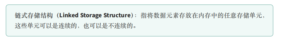 在链式存储结构中,逻辑上相邻的数据元素在物理地址上不要求相邻,实际存储位置是随机的。通常,每个数据元素及其相关信息被组成一个【链结点】。每个链结点除了存放数据本身外,还包