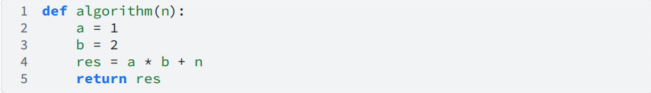 • 当n足够大时,3𝑛 是主要影响项,常数 2 可以忽略不计。