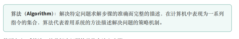算法本质上是一组有序的运算步骤,用于解决特定的问题。除此之外,【**算法】**还必须具备以下五个基本特性: