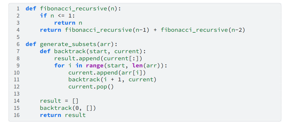 为 2^𝑛,因此时间复杂度为 𝑂(2^𝑛)。generate_subsets 函数通过回溯法枚举所有子集,每个元素