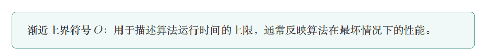 耗情况。通常使用渐近符号(如 𝑂 符号)来描述算法复杂度的增长趋势。