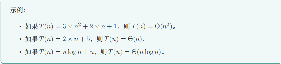 数学定义:设 𝑇 (𝑛) 和 𝑓(𝑛) 为两个函数,如果存在正常数 𝑐1 , 𝑐2 > 0 及 𝑛0,使得对所有 𝑛 ≥ 𝑛0,都 有 𝑐1 ⋅ 𝑓(𝑛) ≤ 𝑇 (𝑛) ≤ 𝑐2 ⋅ 𝑓(𝑛),则称 𝑇 (𝑛) = Θ(𝑓(𝑛))。