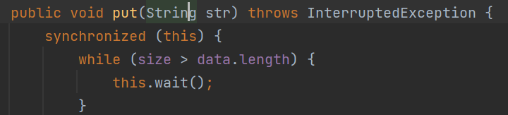 public void put(String str) throws InterruptedException {