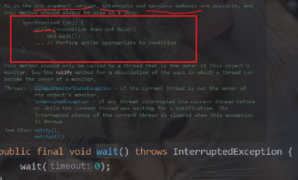 1.此处要求wait要搭配while来进行使用