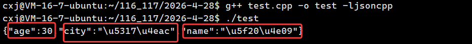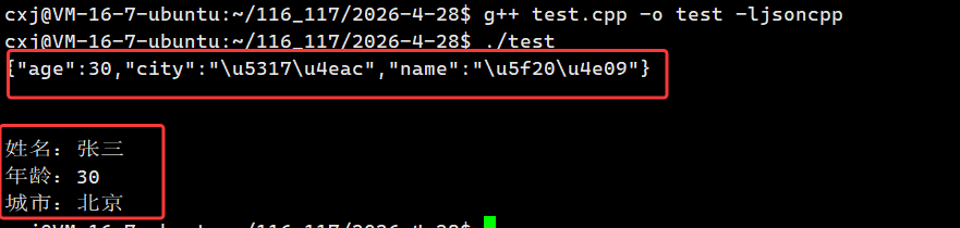 Json::Value 里存的数据,本质上是 "JSON 类型"(比如 JSON 字符串、JSON 数字),不是直接的 C++ std::string、int 类型。因此我们还得使用 Value 类中提供的 asString() 和 asInt() 函数将它们转换为 C++ 中的各个类型。最后存入我们业务层的结构体中打印出来。