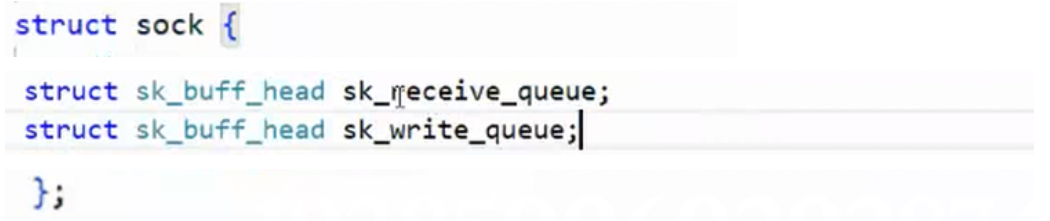 struct sock 结构体是 Linux 内核中 TCP/UDP 传输层协议的真正本体,是整个 Socket 通信链路的核心数据载体。整个 struct sock 结构体的成员非常多,这里我们只截了最核心的两个成员,就是 TCP 收发缓冲区:
