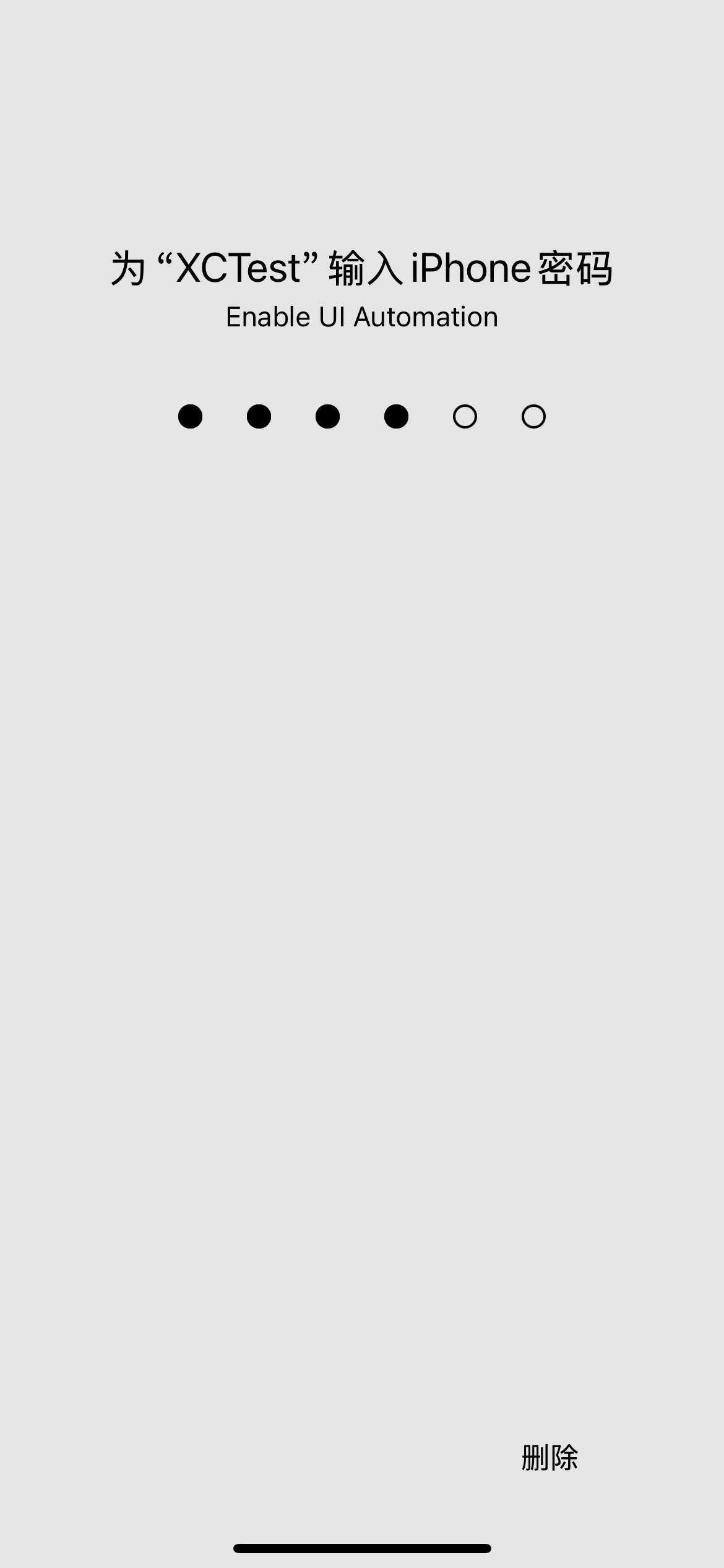 接下来会进行真机检测,需要把iPhone 通过数据线连接MAC,真机检测无误后运行XCTest,运行成功iPhone 上会展示Automation Running 标识