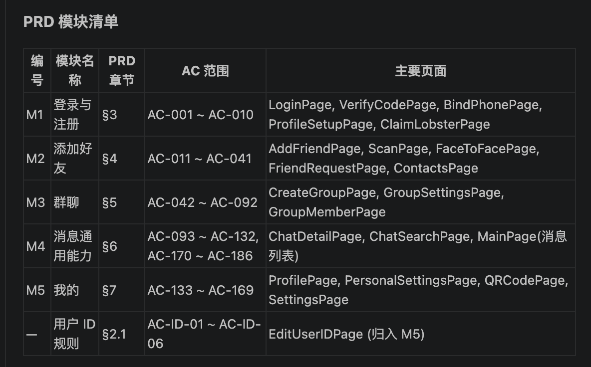 /prd-to-ios-test skill 先进行需求文档解析,一共有5个功能模块,由于全量生成5个模块比较耗时,CC提示我先生成其中一个模块的自动化测试Case,我选择了第5个我的 模块