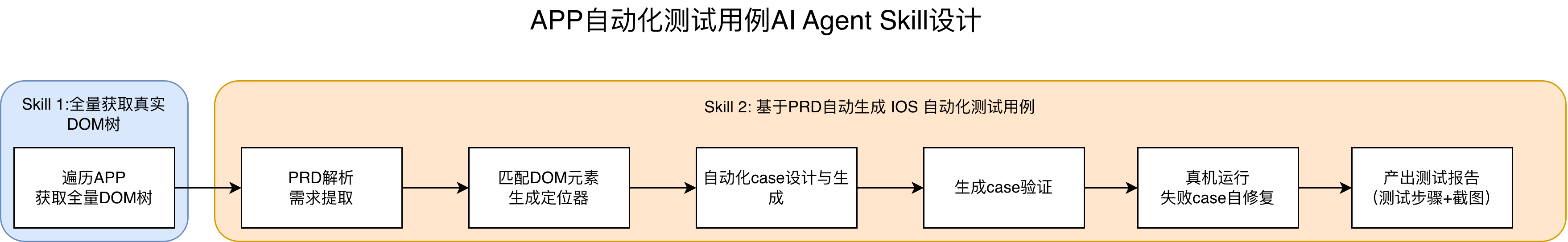 分别执行Skill来进行DOM树抓取-》读取PRD-》自动化测试用例生成-》执行的全流程