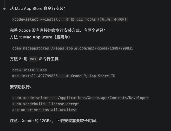 接下来先进行环境搭建,IOS 自动化测试需要安装的环境依赖比较多,需要至少下面的步骤