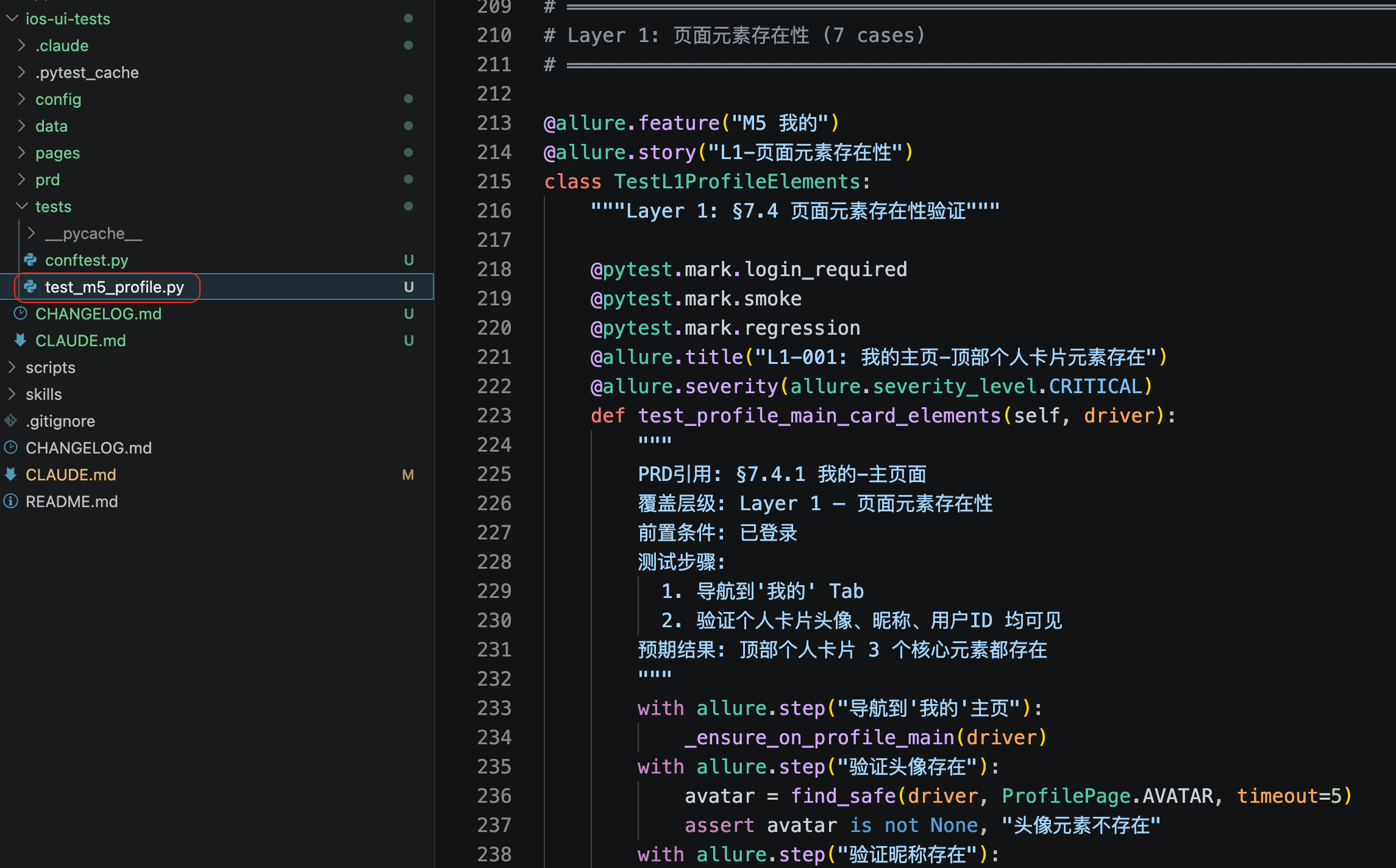 下面test_m5_profile.py 就是AI生成的自动化测试用例脚本,自动化测试用例生成完毕后,给出生成报告