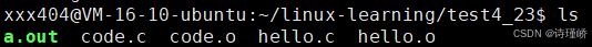 通过编译和链接,在当前文件下有两个源文件,两个扩展名为.o的文件,还有一个可执行程序: