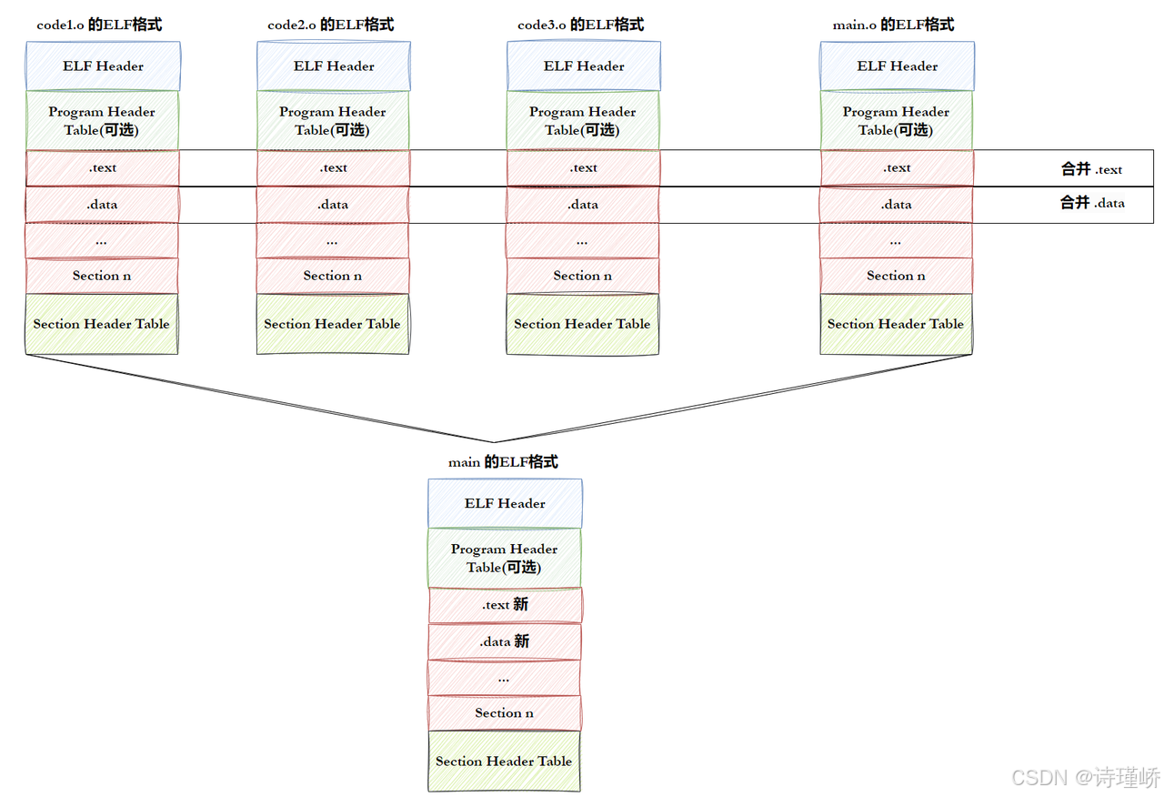 第二步:将多份.o文件section进行合并(库的本质是.o,都是ELF)
