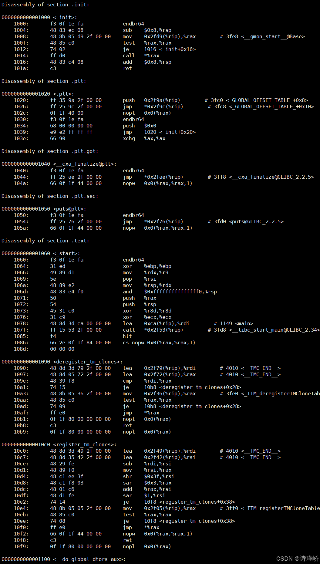 Entry point: 0x1060 # 程序⼊⼝点虚拟地址(动态链接后解析)