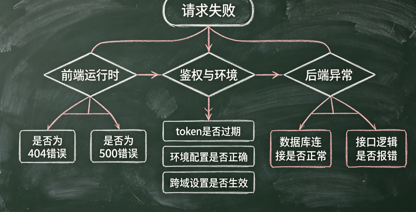 - 能说出前端联调失败时如何快速判断是前端问题、鉴权环境问题还是后端问题