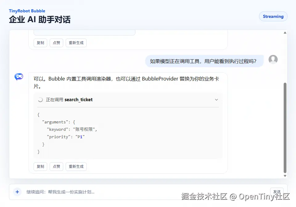 TinyRobot Bubble 的价值不只是"好看的气泡",而是把 AI 对话界面里高频、复杂、容易重复造轮子的展示能力沉淀成了一套可组合系统: