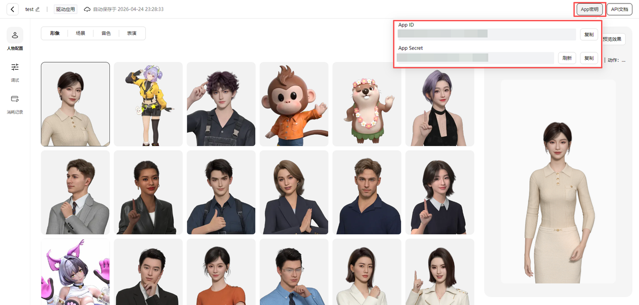 // 魔珐星云具身驱动应用App Secret(用于身份验证)