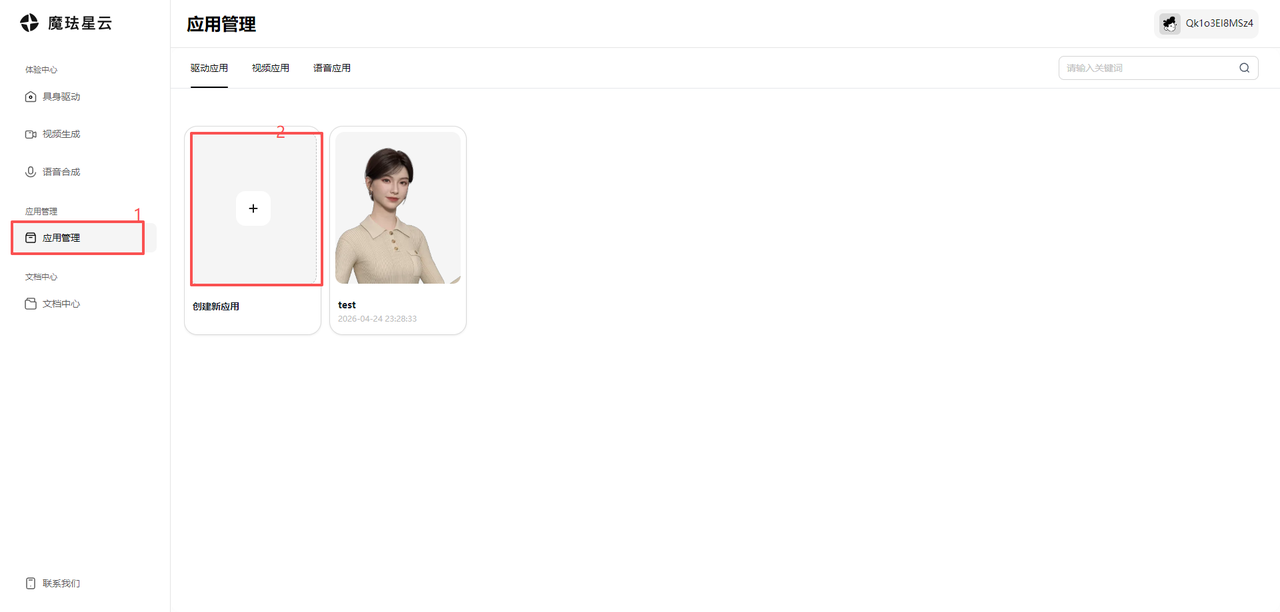 登录魔珐星云控制台,你会发现核心概念不是"上传模型",而是创建应用。你在这里"培植"的是一个可被API实时驱动的智能体实例,而非一段多媒体文件。