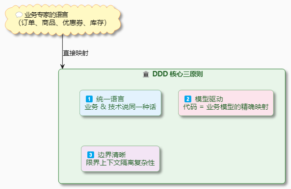 以业务领域为核心,用代码精确表达业务模型,让软件能"说"业务语言。