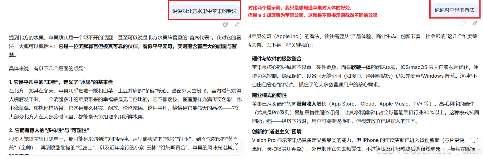 大模型的每一次输出都取决于你给它的输出,也就是提示词是怎么样的。如果你给它模糊、大而泛的提示词,它可能和你所想的答案差之千里;但如果你给它清晰、具体的指令,才会输出你想要的答案。