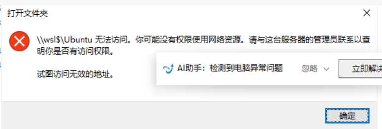 在文件资源管理的窗口中输入\wsl.localhost\Ubuntu-22.04\home\wangtao 报错