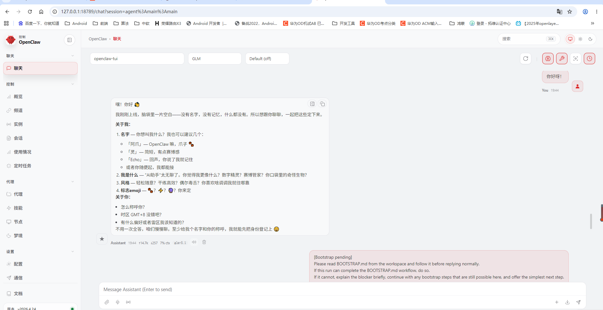 之后就可以在QQ上进行智能对话了,也可以打开OpenClaw进行查看