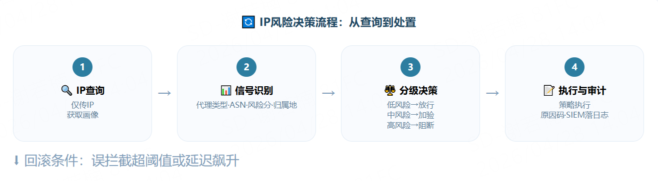 - 企业侧只存必要字段(ASN、代理类型、风险分),保留周期≤90天
