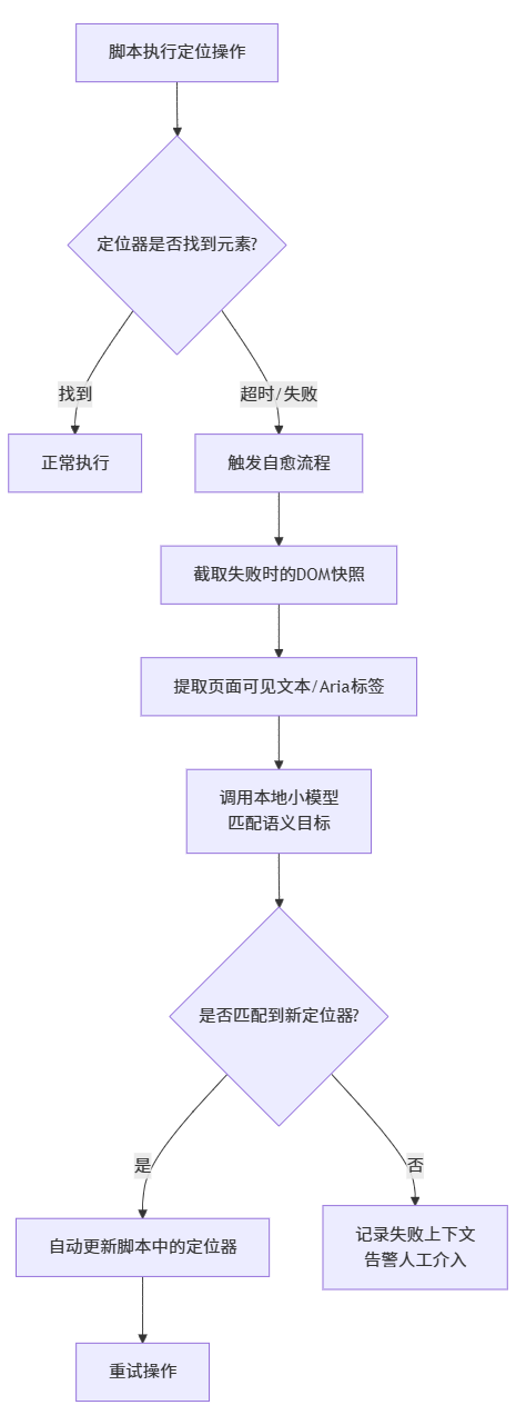 自愈成功后,不要立即更新代码仓库。而是生成一条日志"建议将定位器从A更新为B",由人工在PR阶段确认后合并。这可以防止误匹配。