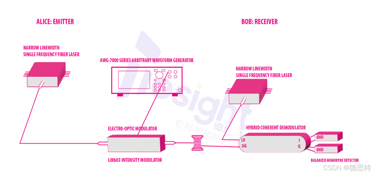 量子密钥分发(QKD)与相干通信系统对相位稳定性和波形精确度的要求达到了物理极限。 德思特 AWG 结合其 16-bit 的极低本底噪声与高级序列重放功能,能够生成包含极其复杂相位偏移与幅度调制的长周期通信脉冲。它不仅大幅降低了量子态制备中的系统误码率,更为高能激光系统的抗干扰测试提供了高保真的"数字靶场"。