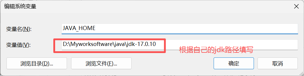 JAVA_HOME,变量值输入JDK的安装路径(如D:\Java\jdk17,需与步骤1中的安装路径完全一致),点击「确定」。