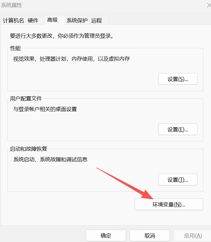 打开环境变量配置窗口:右键点击「此电脑」→「属性」→「高级系统设置」→「环境变量」,或直接在Windows搜索框输入"环境变量",选择"编辑系统环境变量",快速进入配置界面。