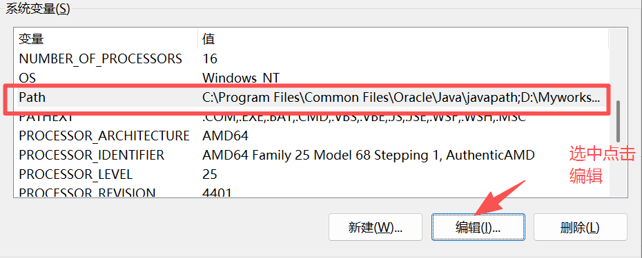 在"系统变量"中找到「Path」变量,选中后点击「编辑」。