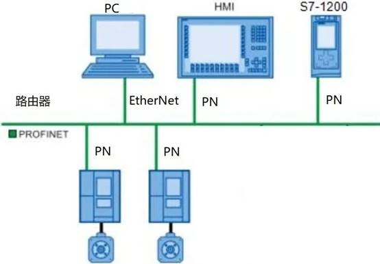 首先我们把硬件连接起来。这套系统里有两个核心设备:S7-1200 PLC和V90 PN伺服驱动器,它们之间通过一根PROFINET网线建立通信。
