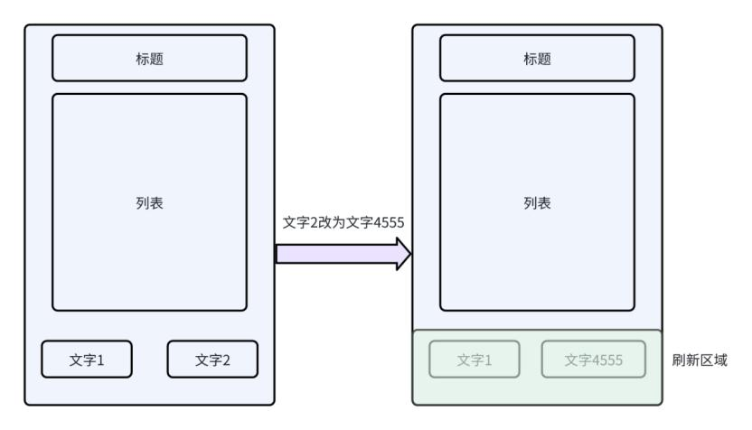 综上所述,如果想要更加丝滑流畅的用户体验,需要首先了解整体的页面渲染流程,可以从每个流程中去优化时间,当然提高本身的硬件也是不可或缺的方式,而ArkUI的思路是对于页面组件的刷新,大部分属于局部刷新的逻辑,所以可以使用差渲染的逻辑,不需要每次在每次刷新信号来了之后,就把整个页面都刷新一次,计算出差分的节点,仅仅对这些节点,进行局部进行刷新即可。其示意如图3所示。